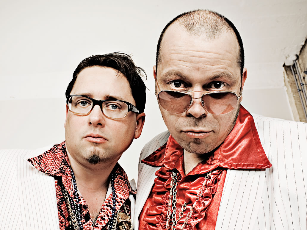 Juke Joint Pimps sind Mighty Mike und T-Man, eine Zweimannband mit Schlagzeug, Mundharmonika, Gitarre und Gesang.