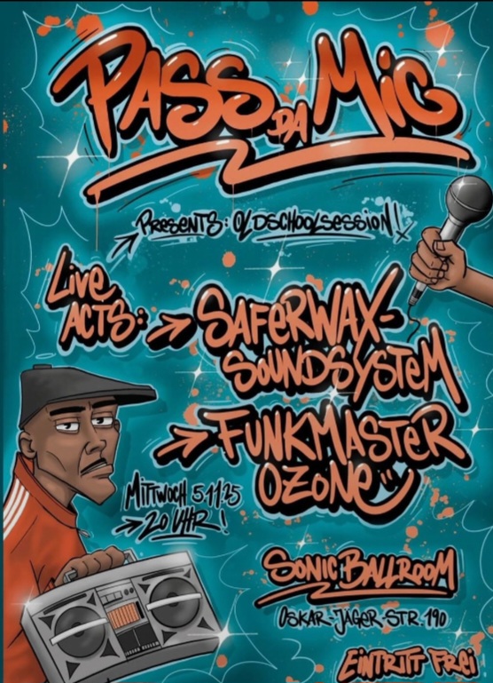 Mit "Pass da Mic!" kehrt die klassische Freestylecypher zurück nach Köln. Ein DJ, ein Mikro, eine offene Bühne für alle die Hip-Hop l(i)eben.